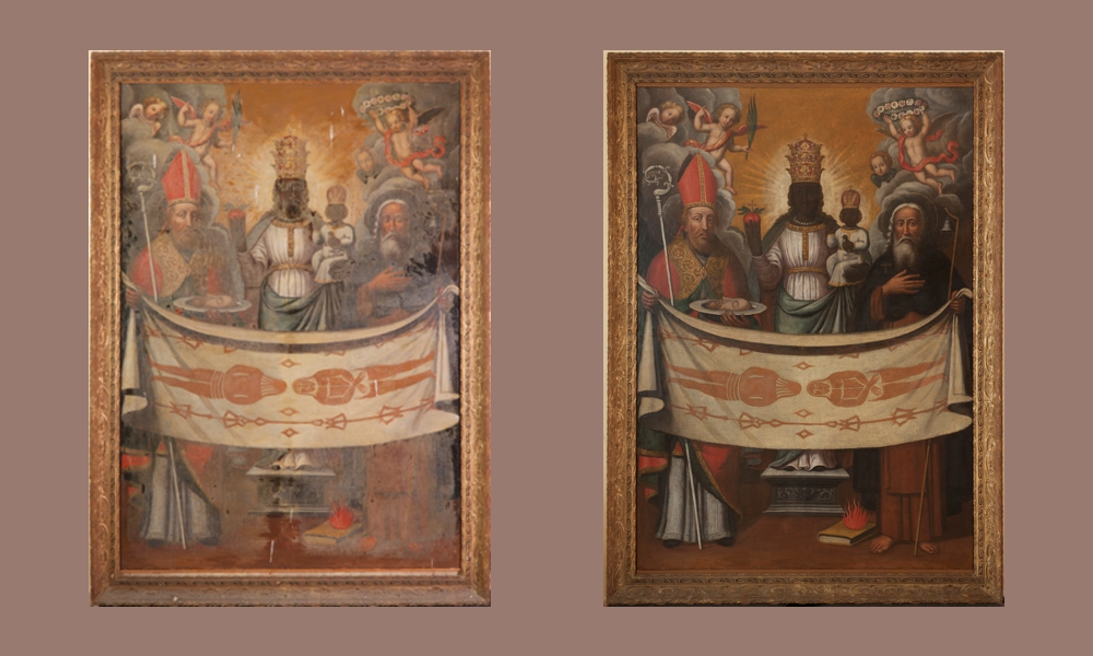 - Attr. a Pietro Lace - Madonna d'Oropa tra i Santi Grato e Antonio Abate che mostrano la Sacra Sindone